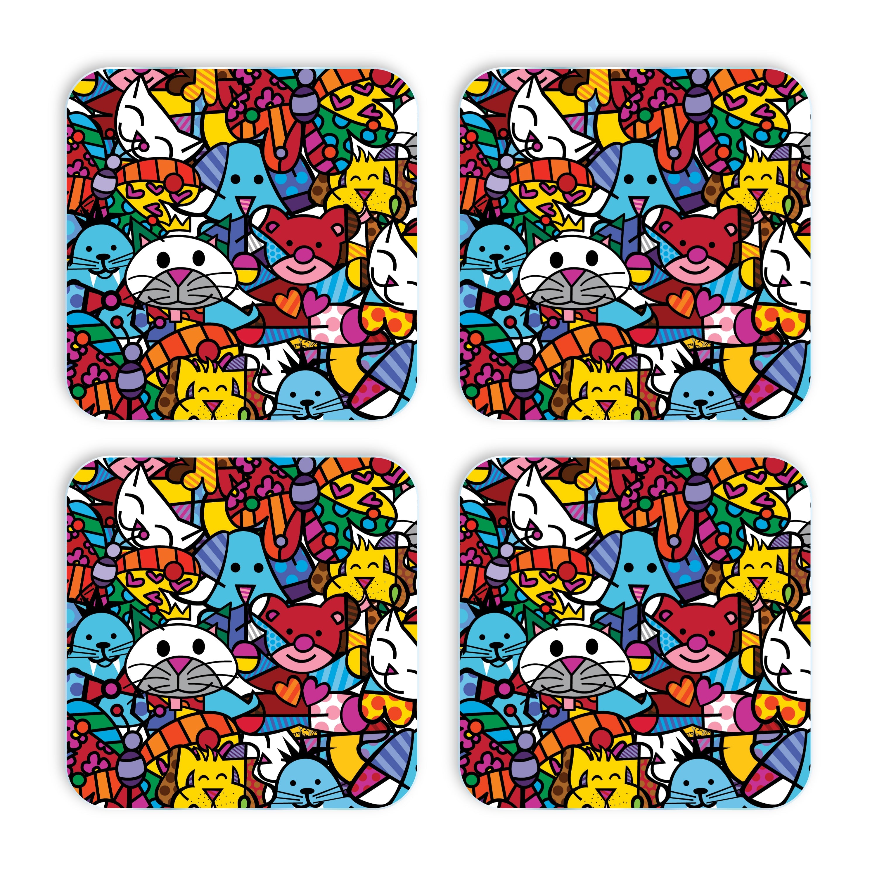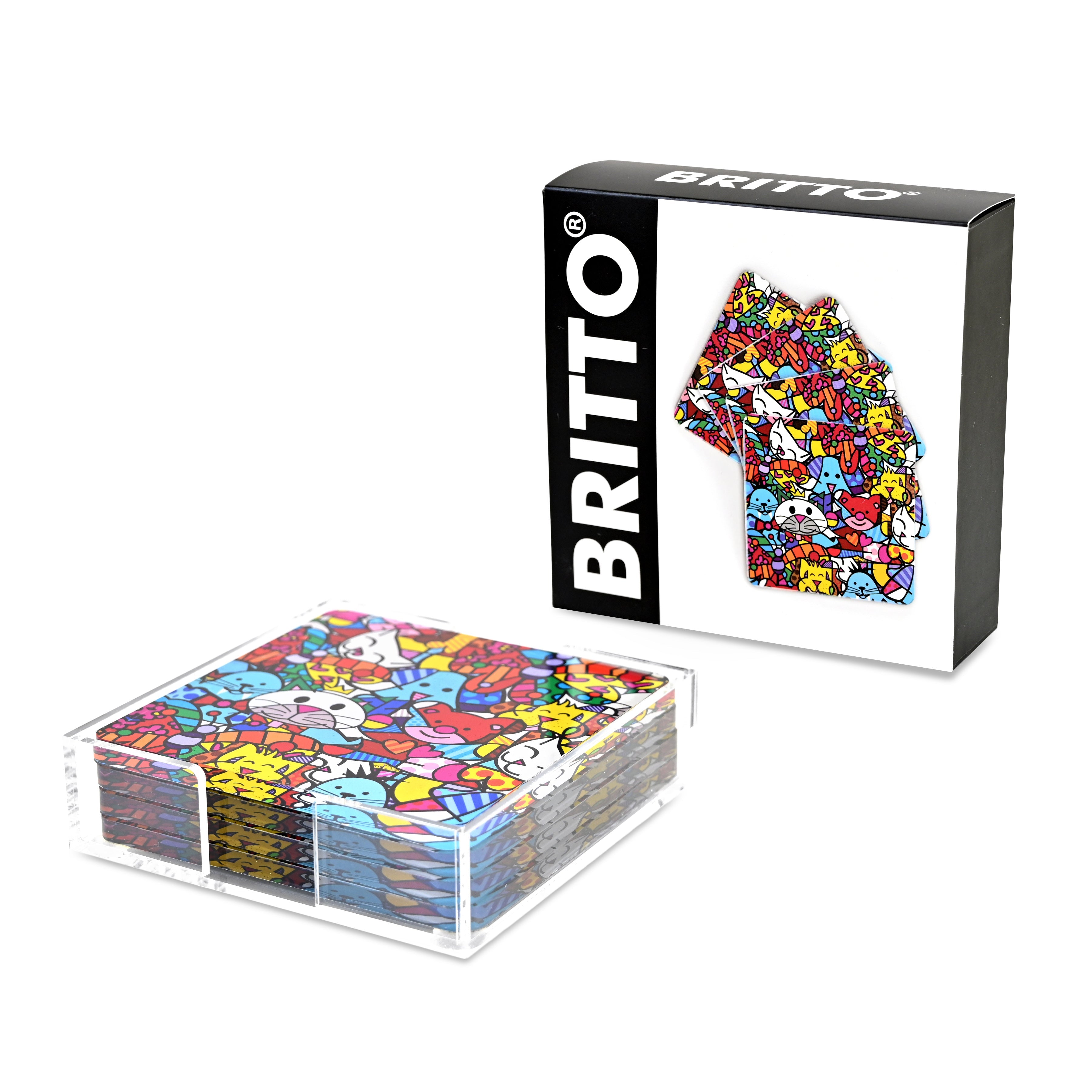 Adorn your tabletop with the BRITTO® Coasters. This set of four clear acrylic coasters not only protects your surfaces but also adds a vibrant touch to your decor. Each coaster has a smooth black velvet bottom to ensure a scratch-free experience, while the set comes beautifully packaged in a clear case.