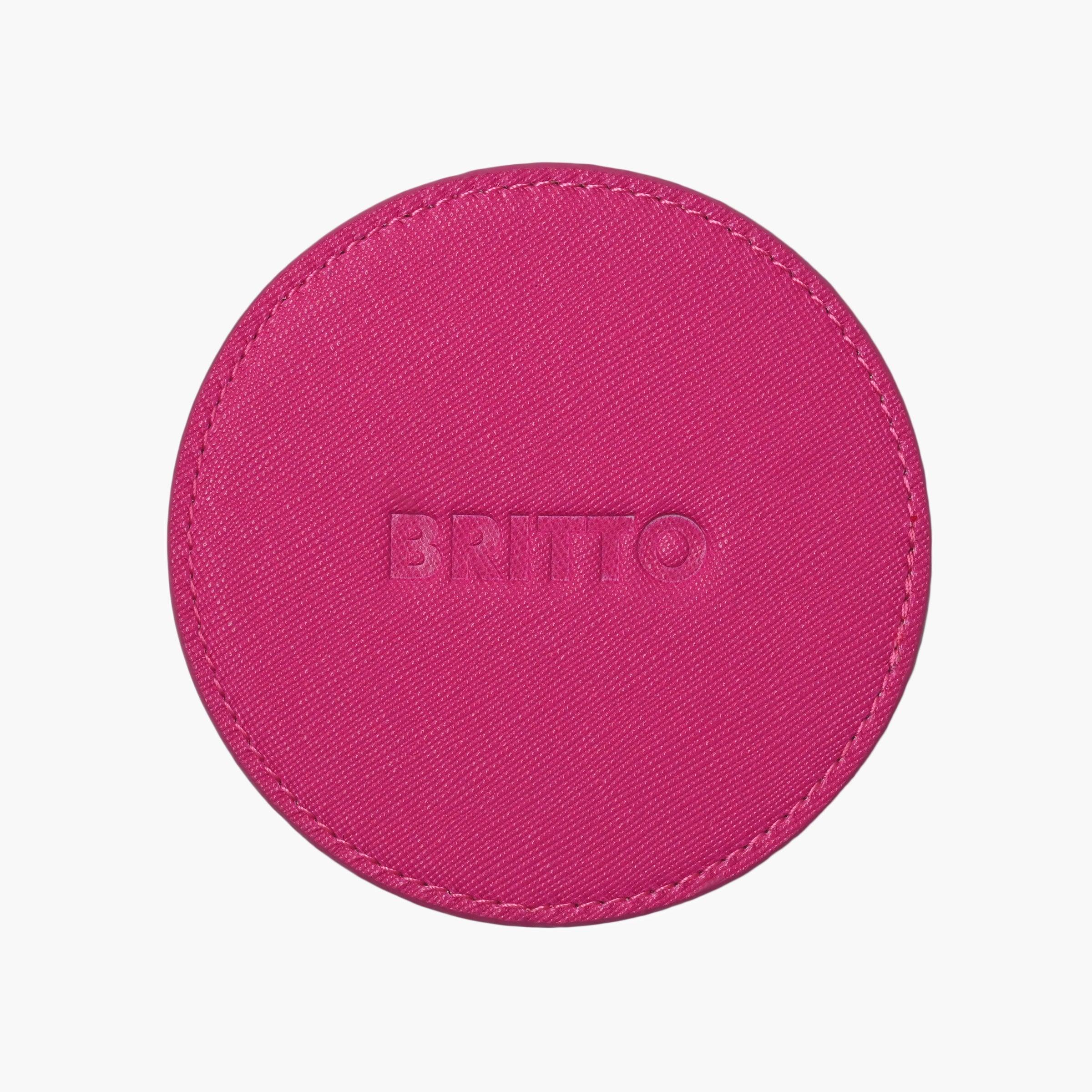 Material: Set of 4 round leather coasters with a pink leather bottom ( Set comes with leather case )