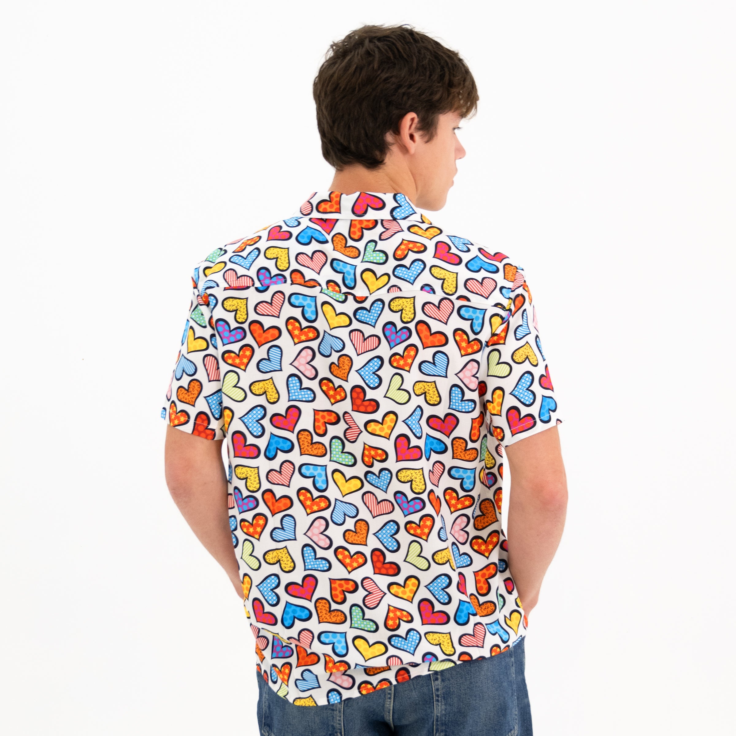BRITTO® MEN'S SHORT SLEEVE BUTTON DOWN SHIRT - COLORFUL HEARTS