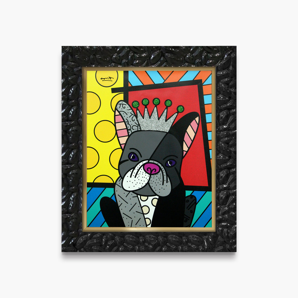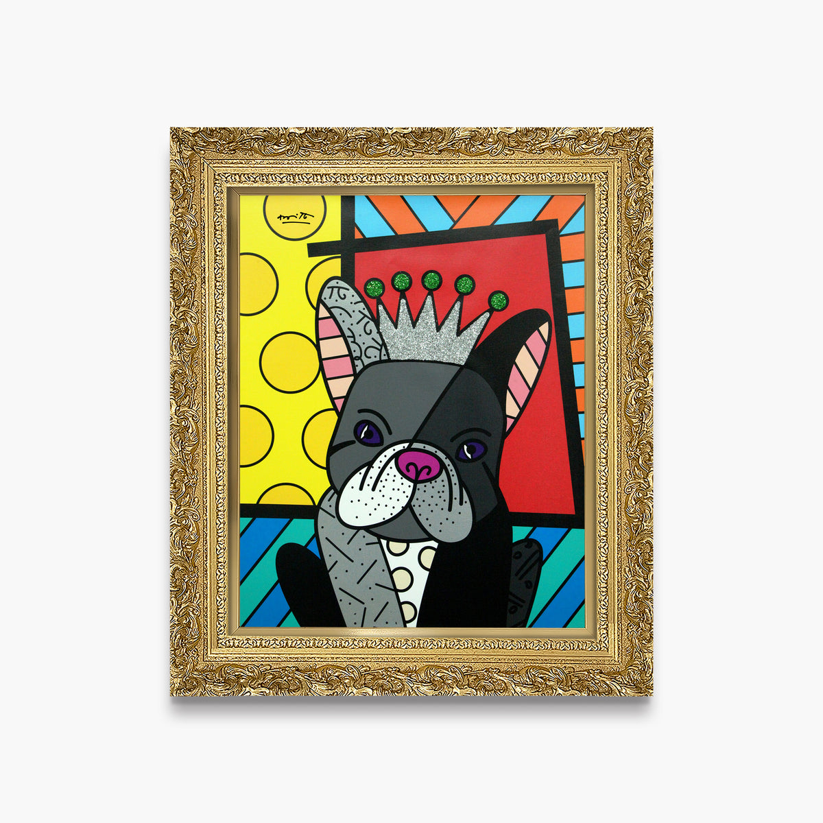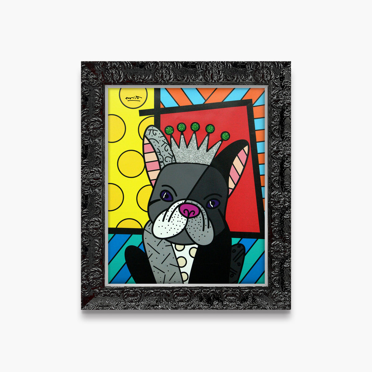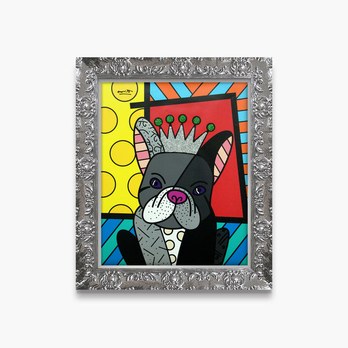 Royalty embodies Romero Britto’s celebration of confidence, power, and joy through his unmistakable pop-art language. Rendered with bold outlines, vibrant colors, and playful patterns, the composition elevates its subject with a sense of elegance and strength. Diamond Dust hand embellishments add a radiant shimmer, enhancing the artwork’s regal presence and visual depth.