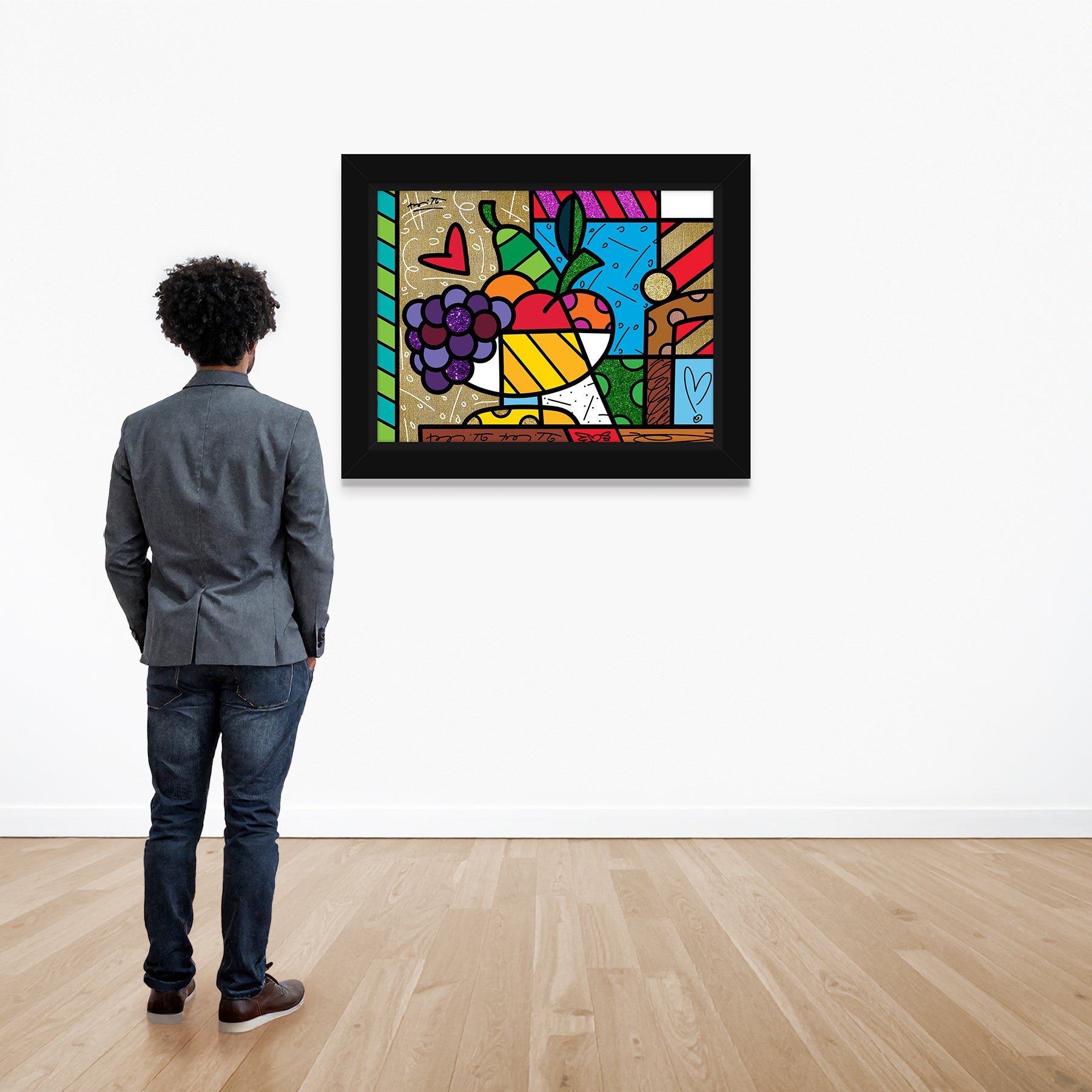 Inspired by Romero Britto’s mother, Lourdes, and the cherished bowl of fruit that adorned their family dining table, Lourdes’ Fruits reflects themes of home, tradition, and familial warmth. Through vibrant color and bold pattern, the artwork celebrates everyday beauty and the emotional connections rooted in memory and love.
