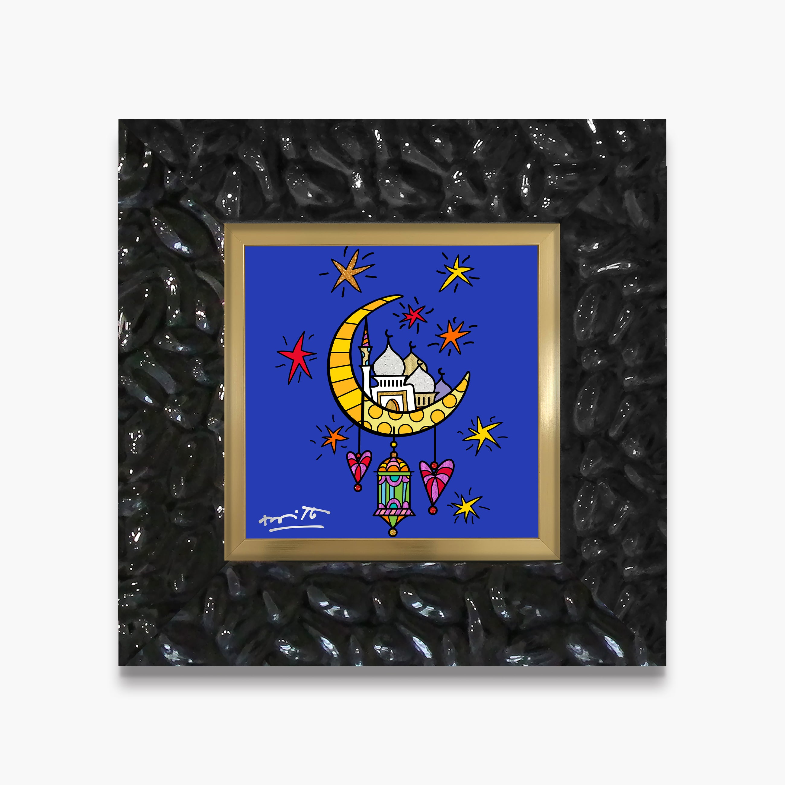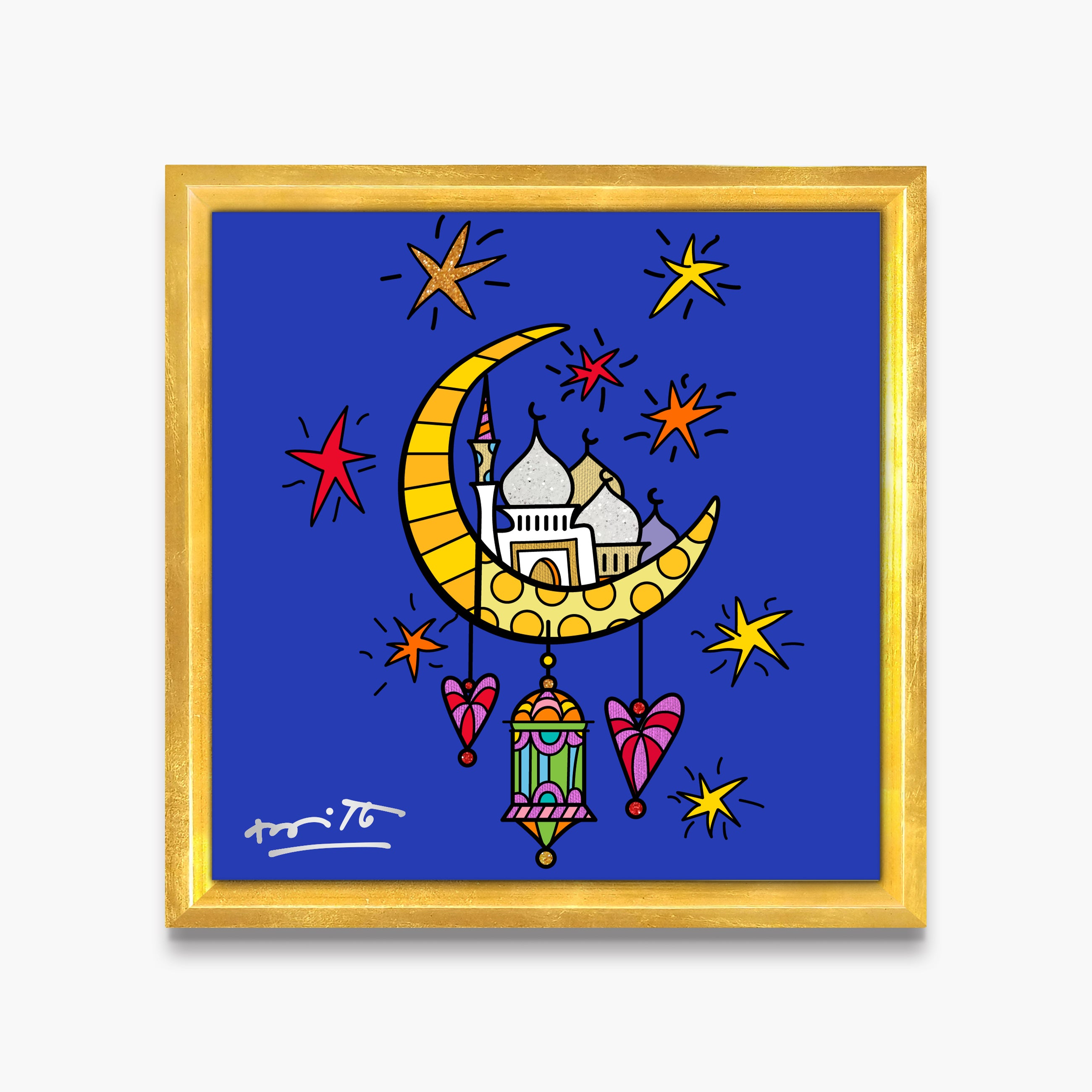 “Ramadan” celebrates the spirit of the holy month, capturing themes of reflection, community, and joy in Romero Britto’s signature vibrant, colorful, and uplifting style.