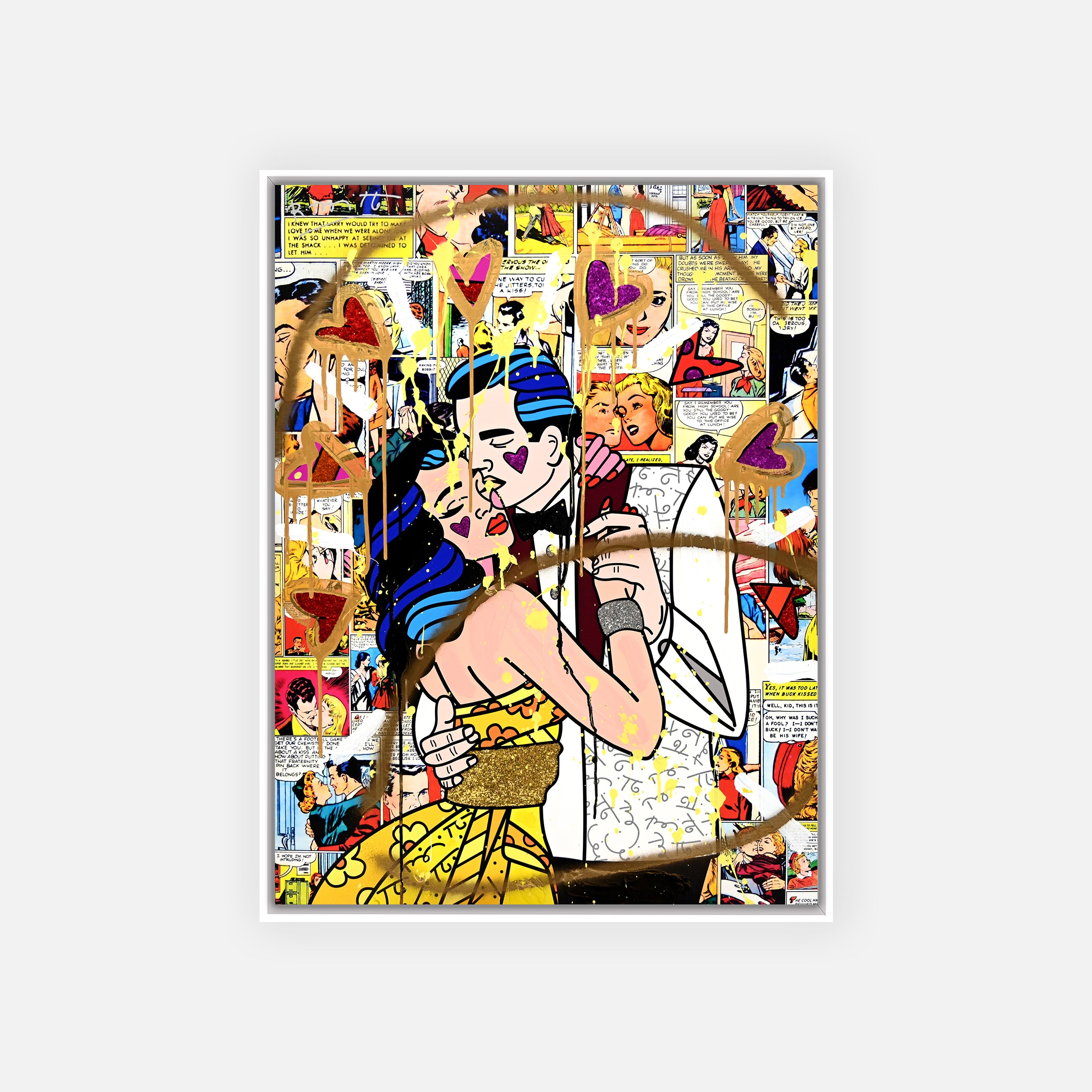 “Beautiful Couple” from the Romance Collection celebrates love, unity, and joyful companionship through vibrant color and expressive pattern. Enhanced with diamond dust embellishments, this mixed media original on canvas radiates warmth and affection, capturing the beauty of connection and shared happiness in a bold and uplifting composition.