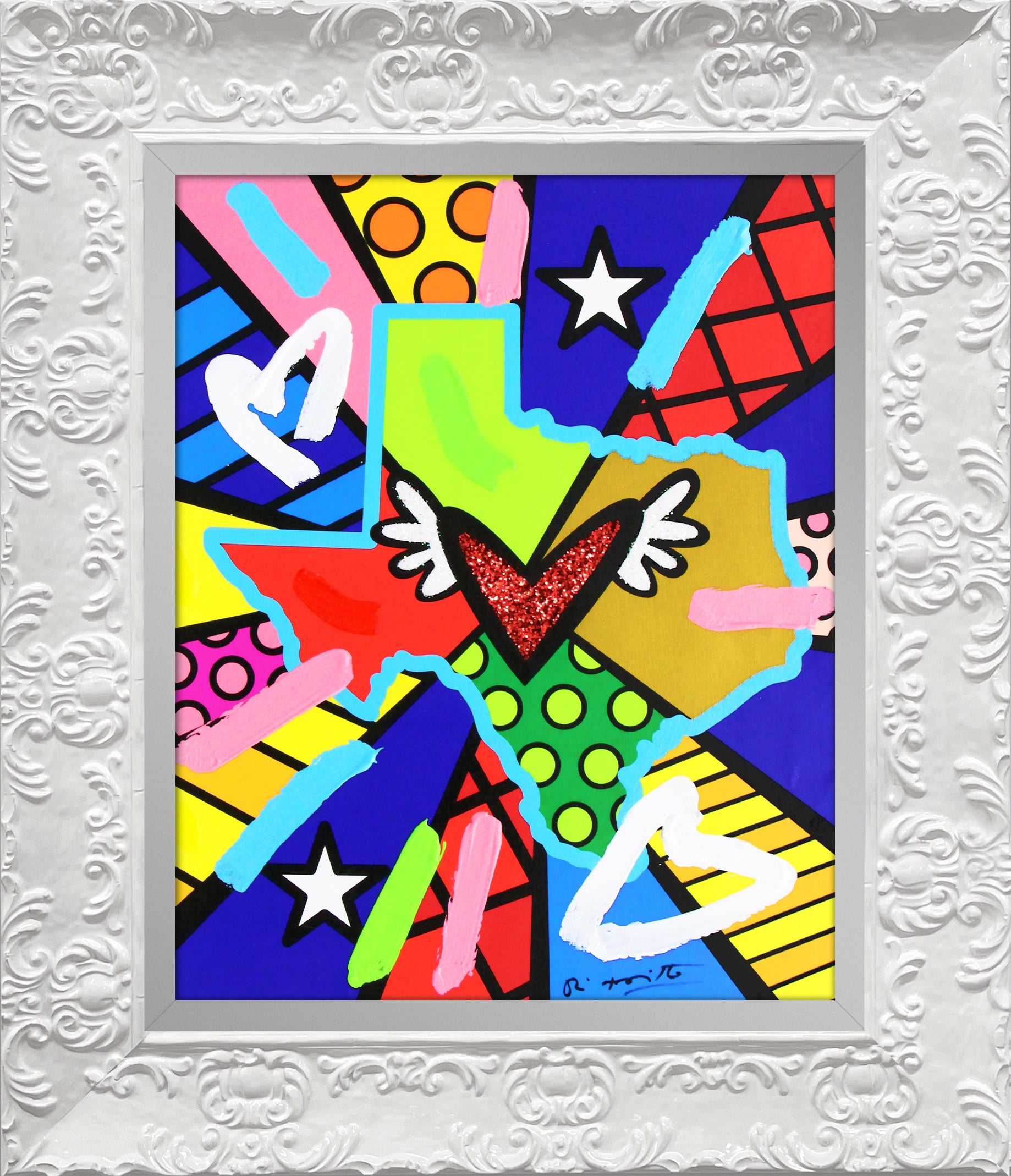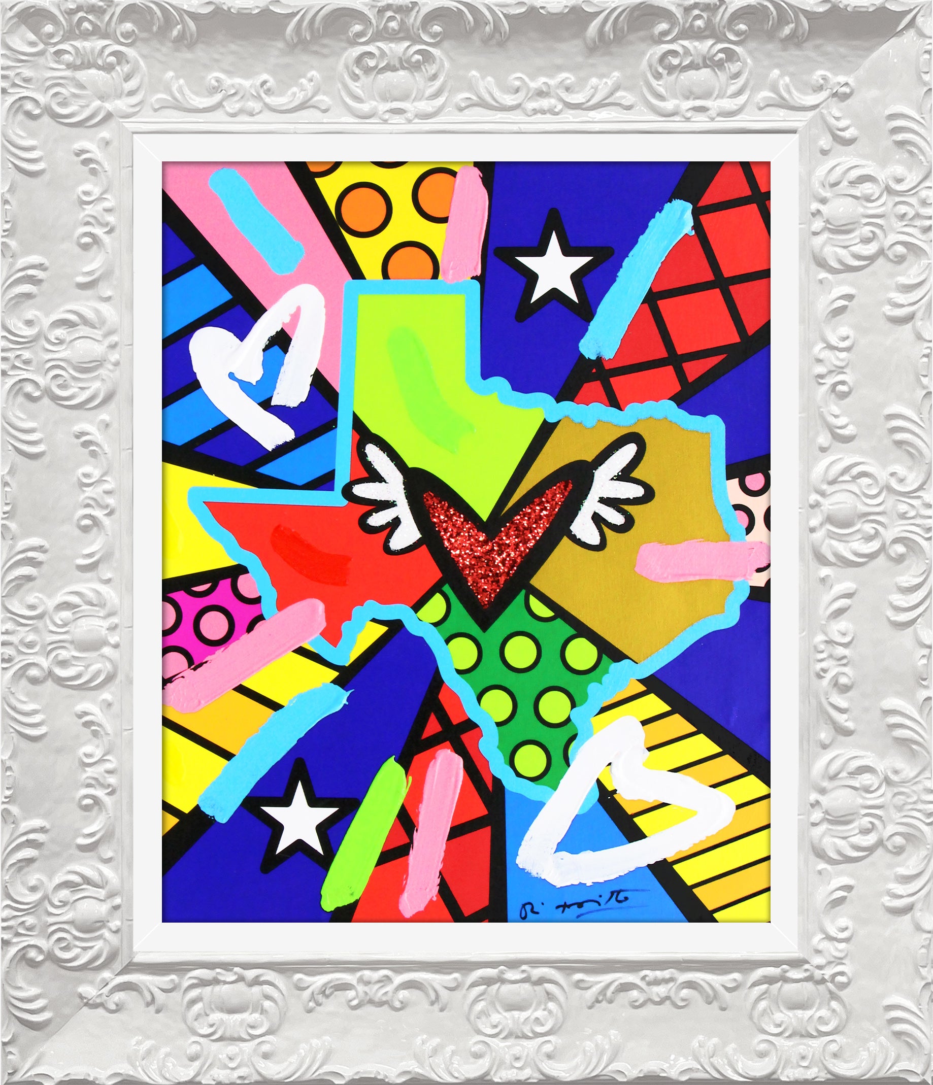 Hand signed and embellished by the artist and includes an exclusive hologram and Certificate of Authenticity from Romero Britto's Studio.
