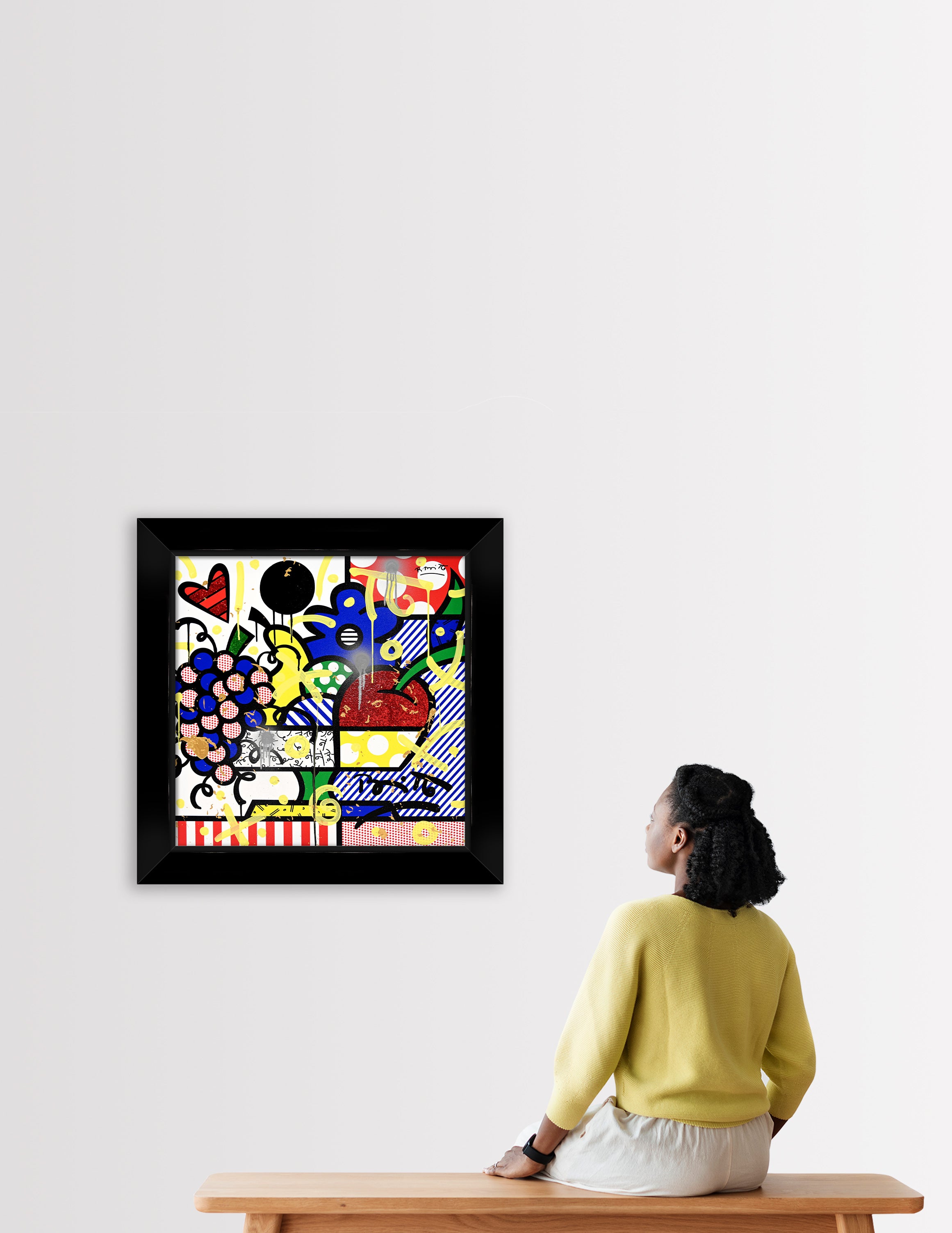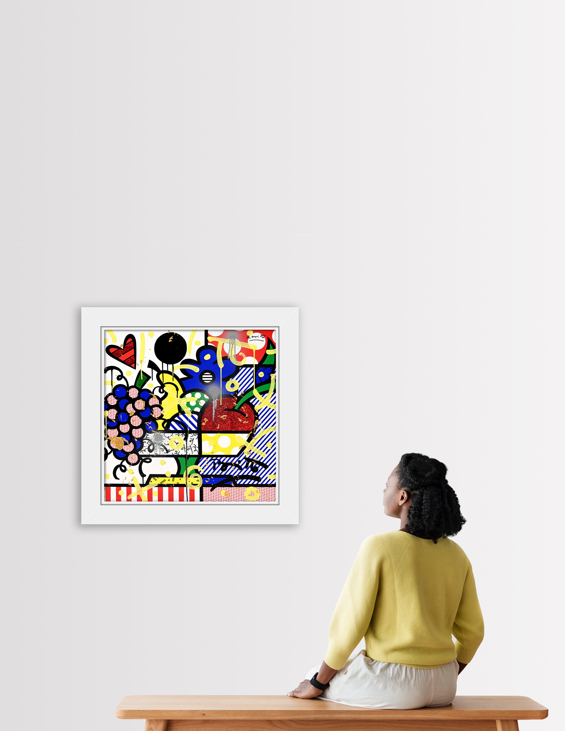 “Tuscany” is a vibrant mixed media original that captures the charm, warmth, and scenic beauty of the iconic Italian region. Using acrylic paint, oil pen, and spray paint on canvas, enhanced with diamond dust embellishments, Romero Britto transforms the landscape into a bold, joyful composition filled with color, movement, and contemporary pop-art energy.