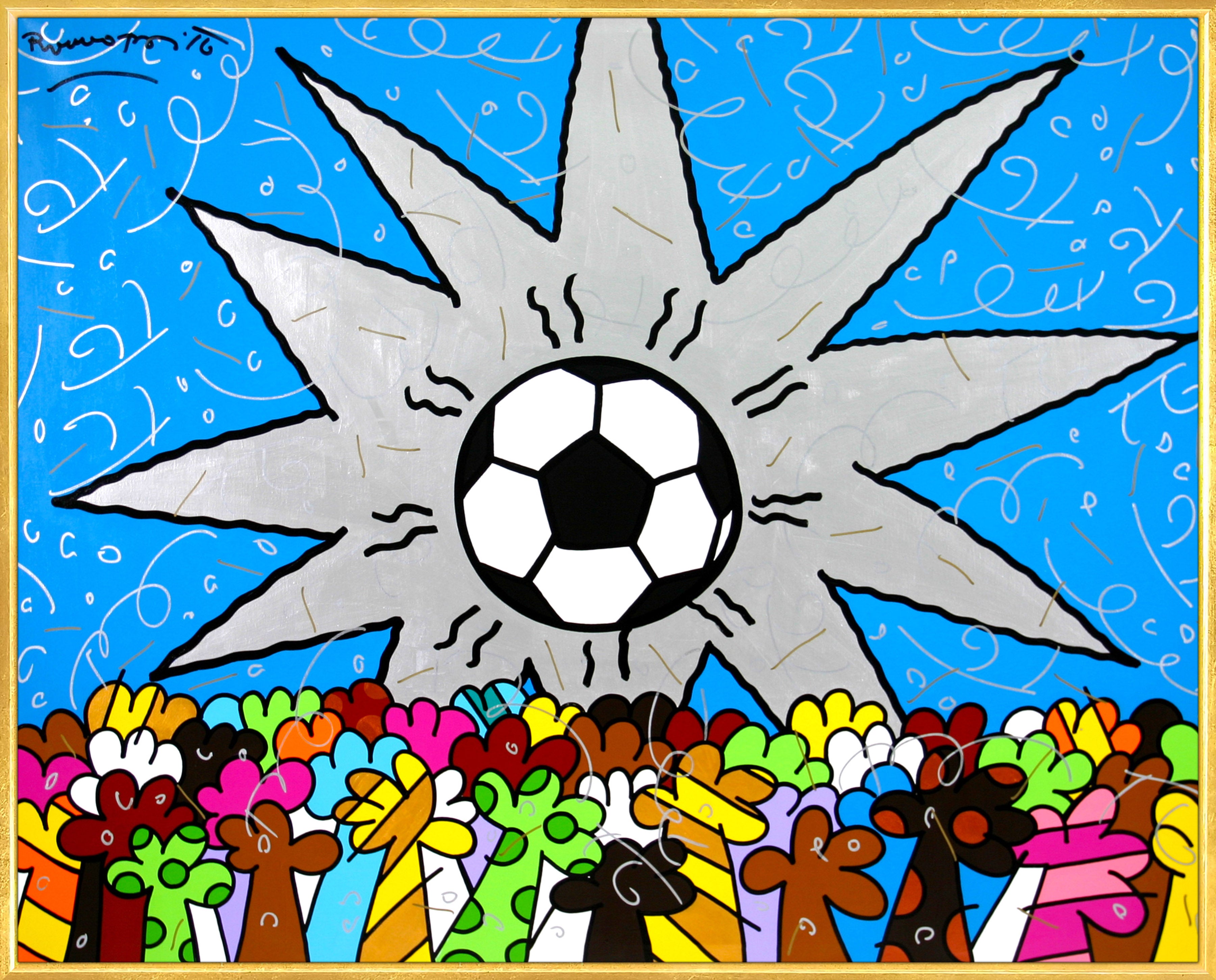 “We Love Pele” is a vibrant homage to the legendary soccer star, celebrating his talent, influence, and spirit. The horizontal format emphasizes movement and energy, while bold acrylic colors and intricate oil pen detailing create depth, rhythm, and visual excitement. This original painting transforms the beloved athlete into a lively pop-art composition, radiating optimism, passion, and contemporary flair.