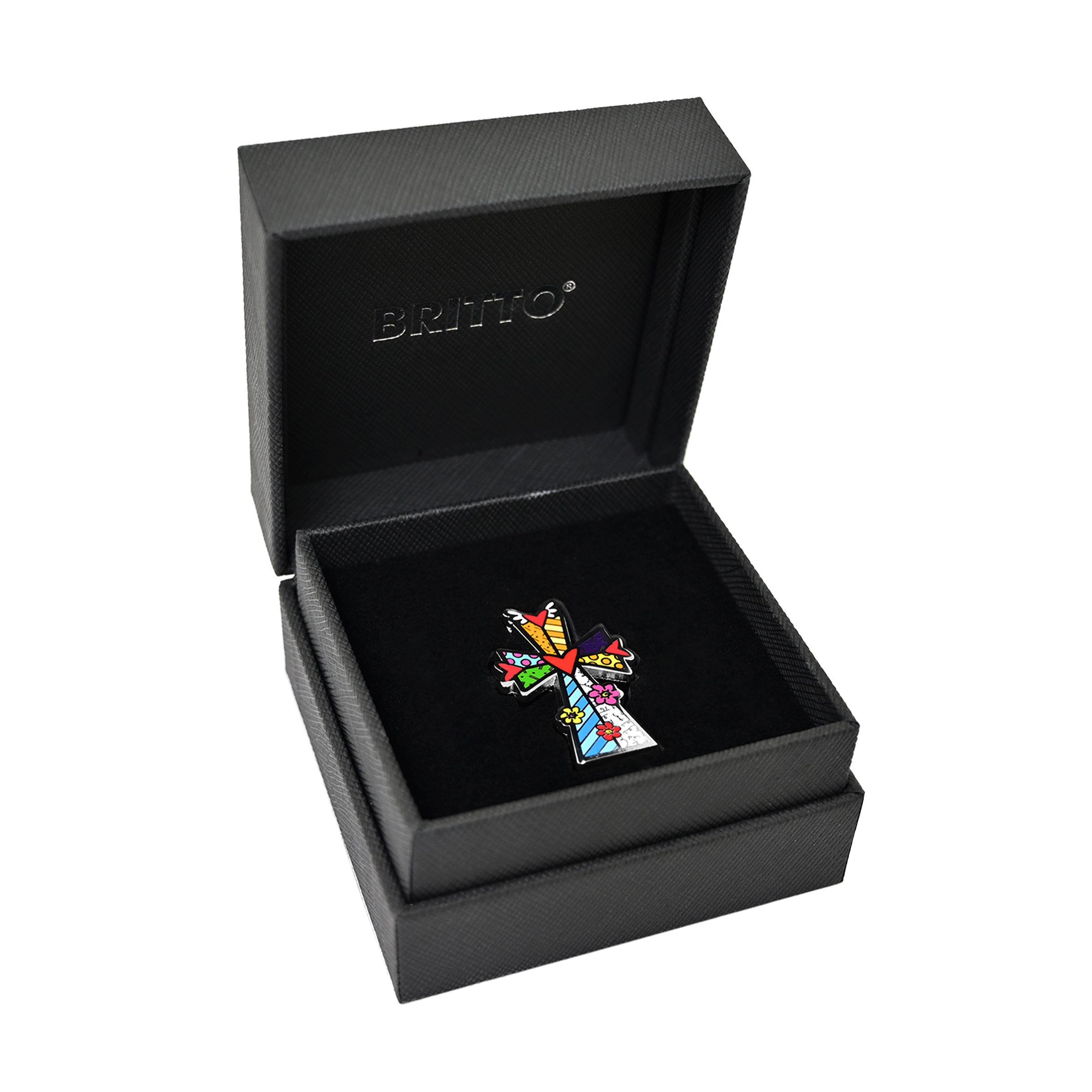 Accessorize with Artistry – Introducing the BRITTO® Pin, a collectible enamel pin featuring a custom clutch pin back, this stylish accessory is shipped in a BRITTO Jewelry box adorned with a holographic hologram, making it perfect for gifting. Elevate your style with this iconic pin, showcasing the vibrant and joyful designs of Romero Britto.