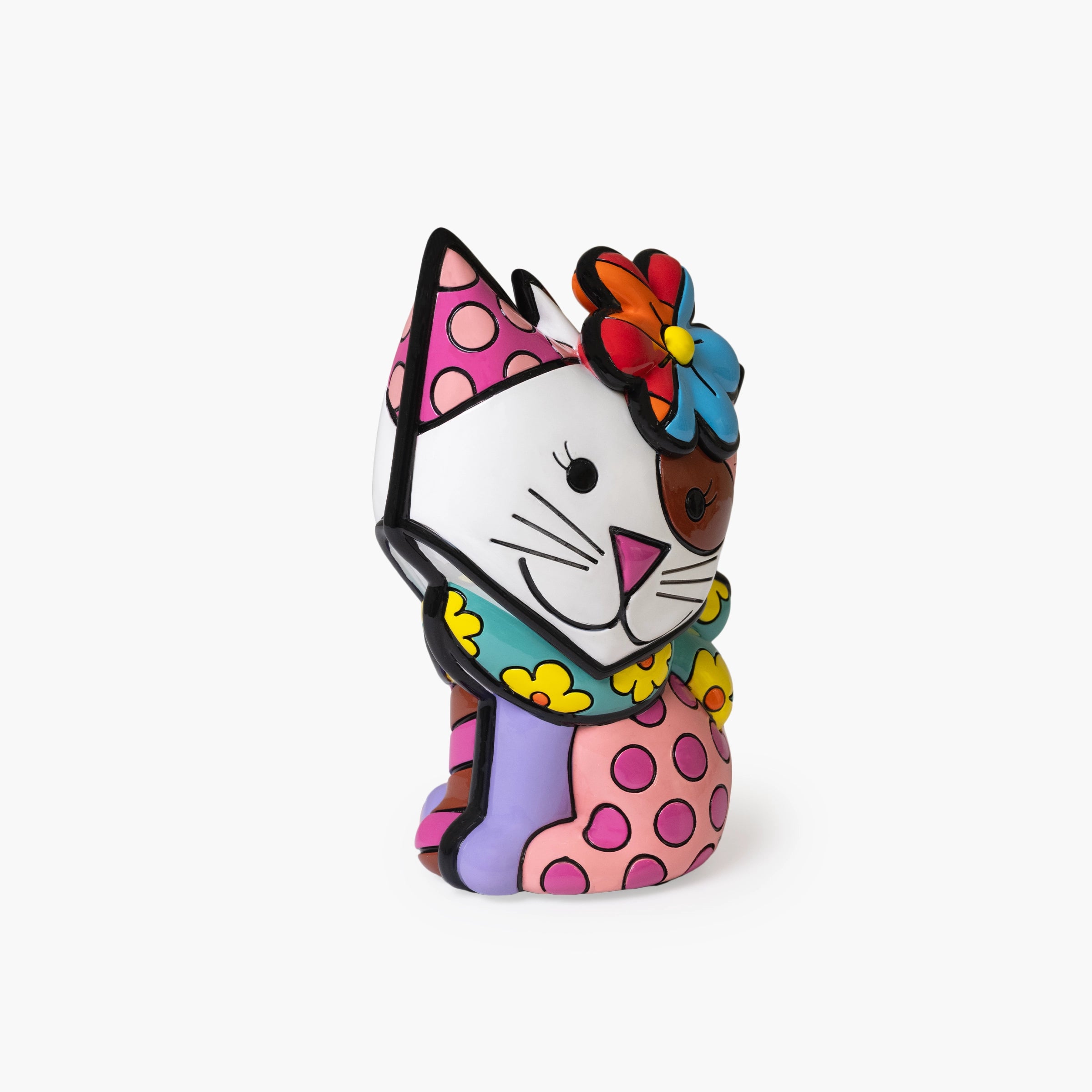Measures 5 in (H) x 4 in (W) (12.7 x 10.16 cm), offering a sleek, slightly narrower silhouette that fits effortlessly into smaller display spaces while still making a bold visual statement. Crafted from premium resin, this Romero Britto collectible figurine highlights the artist’s signature vibrant tones and graphic patterns, finished with a digital signature accent.Ideal for adding a contemporary pop-art touch to any room, this piece is perfect for collectors and décor lovers alike. Its solid construction helps maintain its detailed finish and vivid appearance over time. For care, use a soft, dry cloth and avoid harsh chemicals or abrasive cleaning methods.