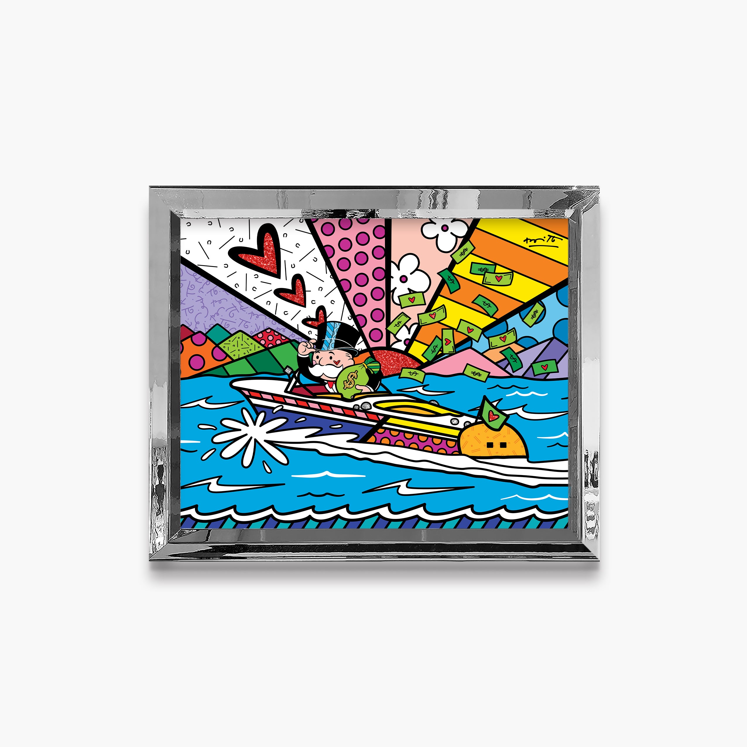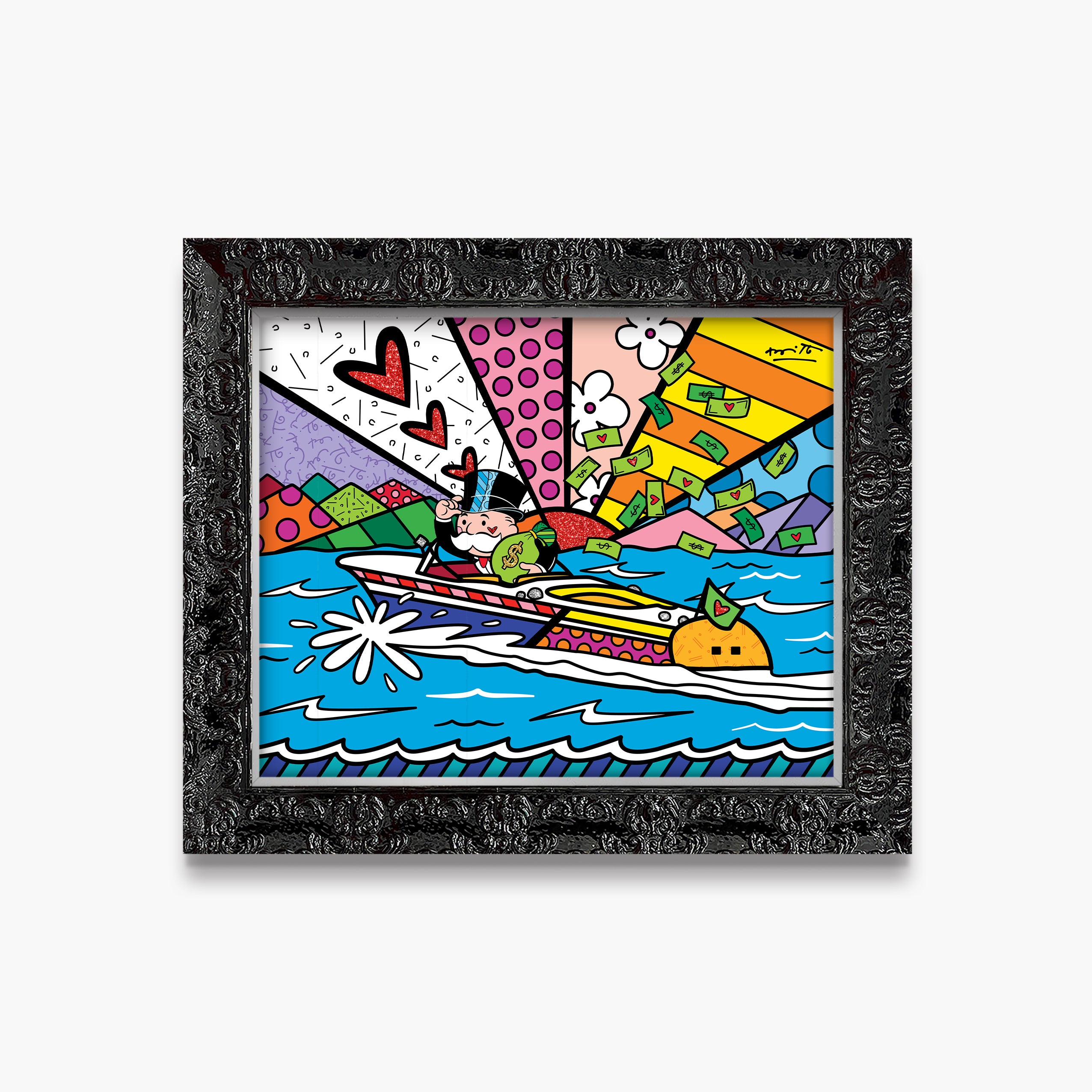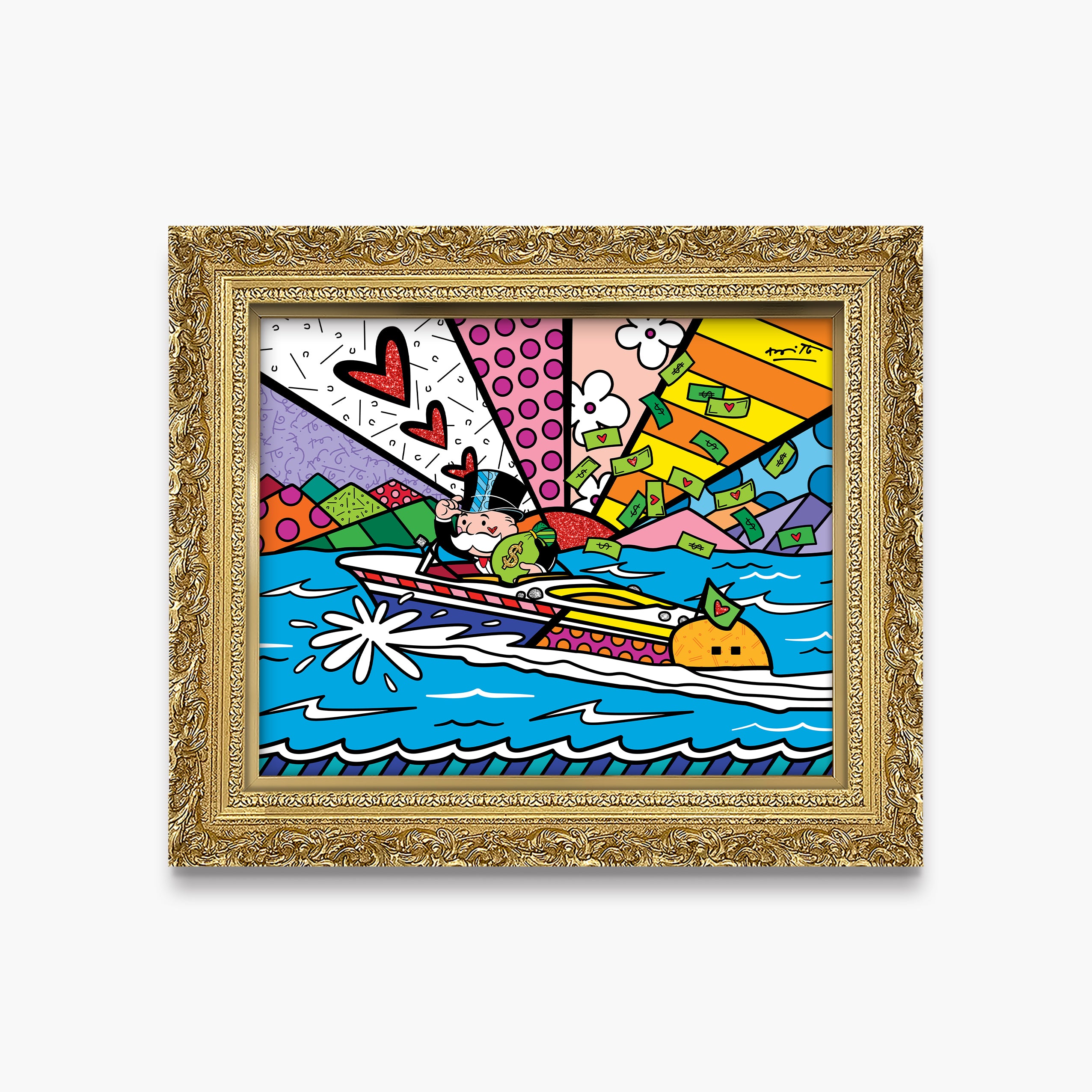 “Cash Flow (Monopoly)” is inspired by the American dream and the history of entrepreneurship across generations. Romero Britto celebrates the joy of achieving success, highlighting the excitement of enjoying life in his signature vibrant, colorful, and playful style.