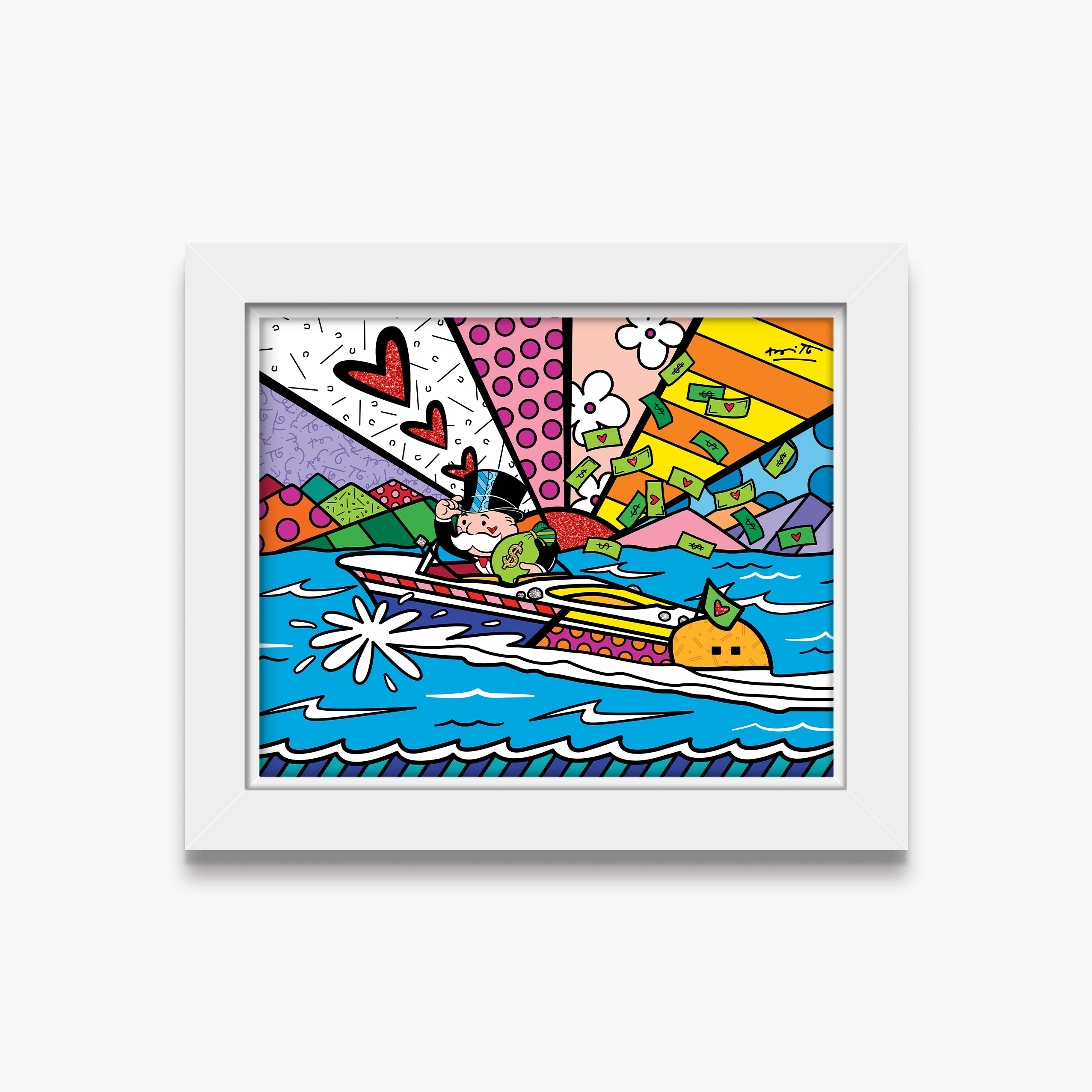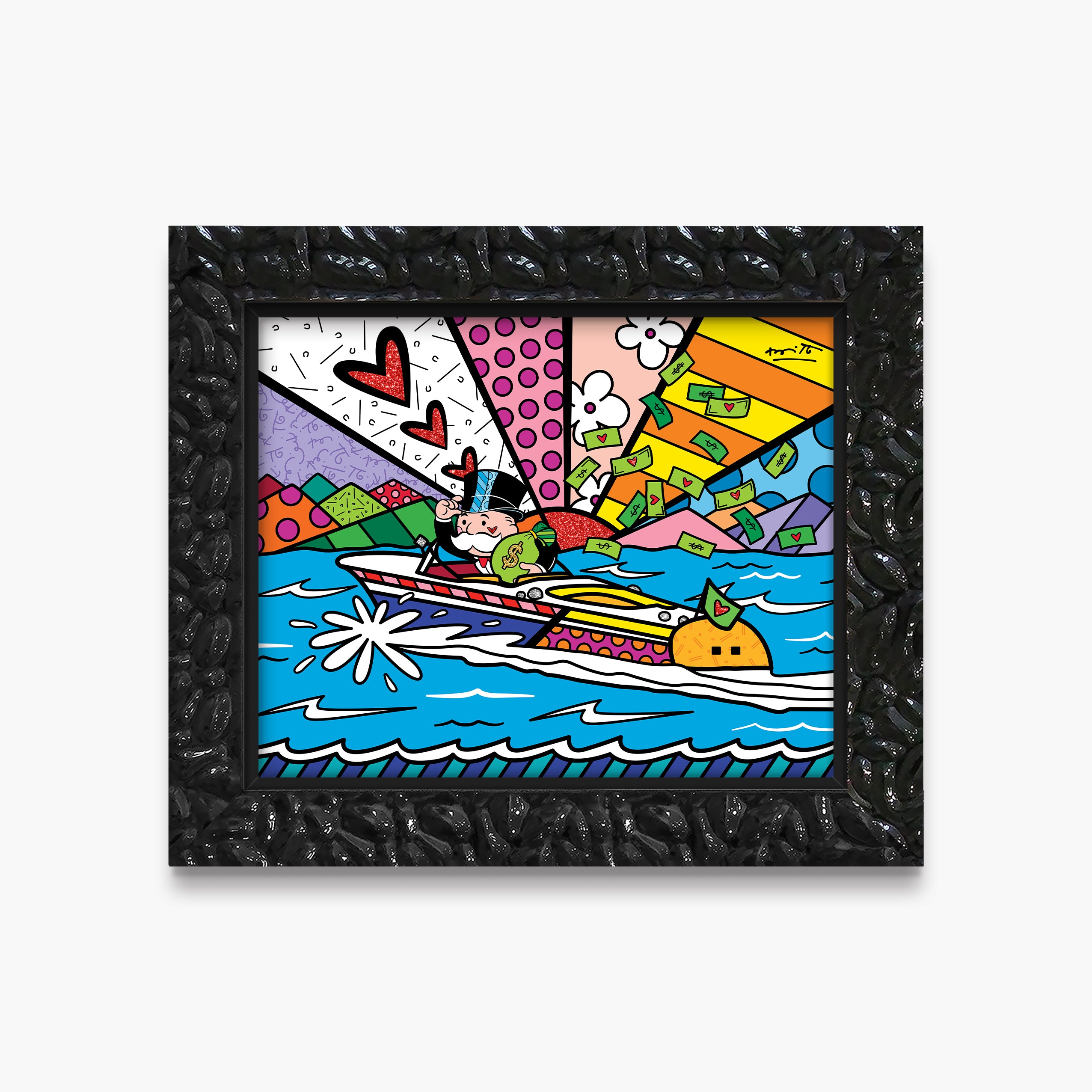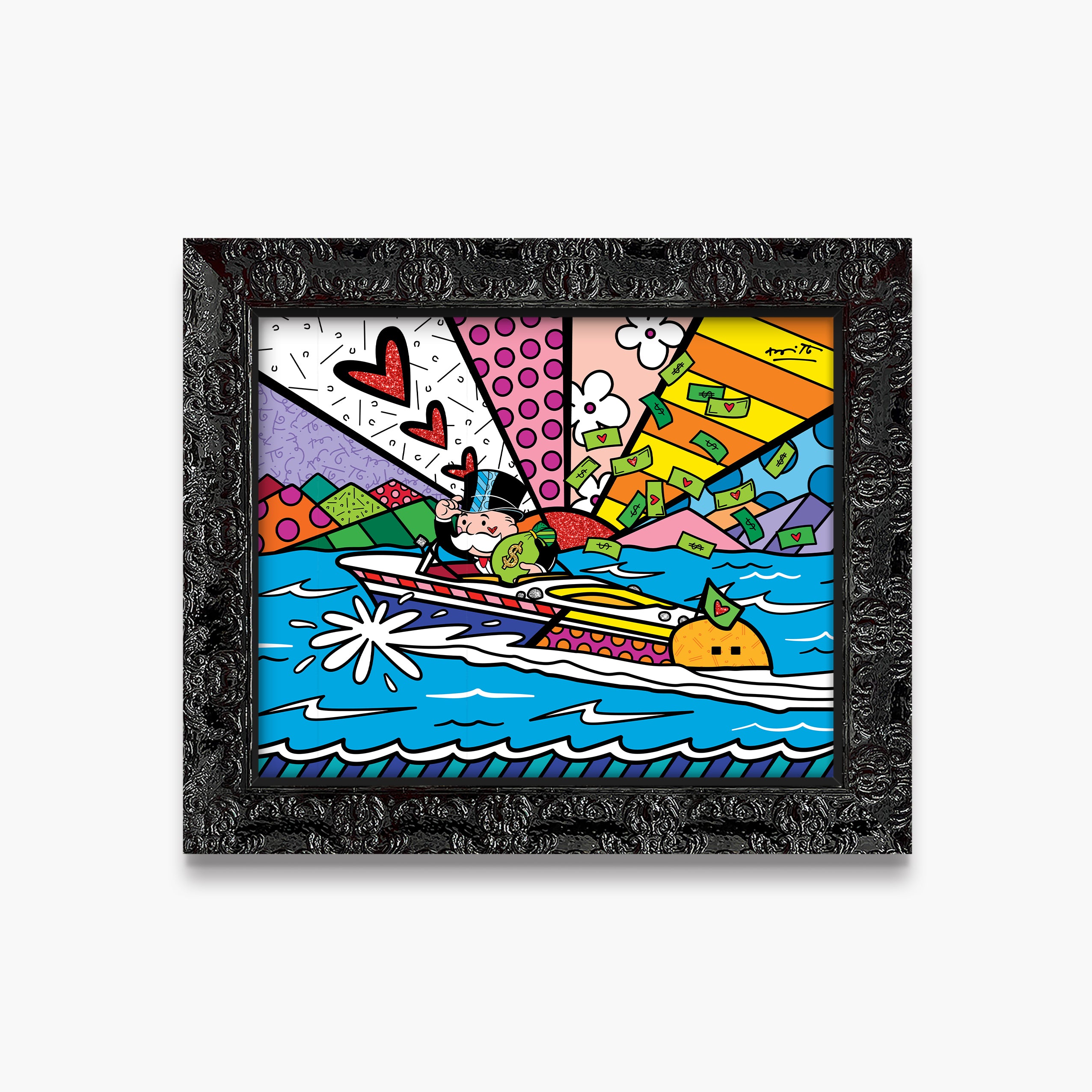 “Cash Flow (Monopoly)” is inspired by the American dream and the history of entrepreneurship across generations. Romero Britto celebrates the joy of achieving success, highlighting the excitement of enjoying life in his signature vibrant, colorful, and playful style.