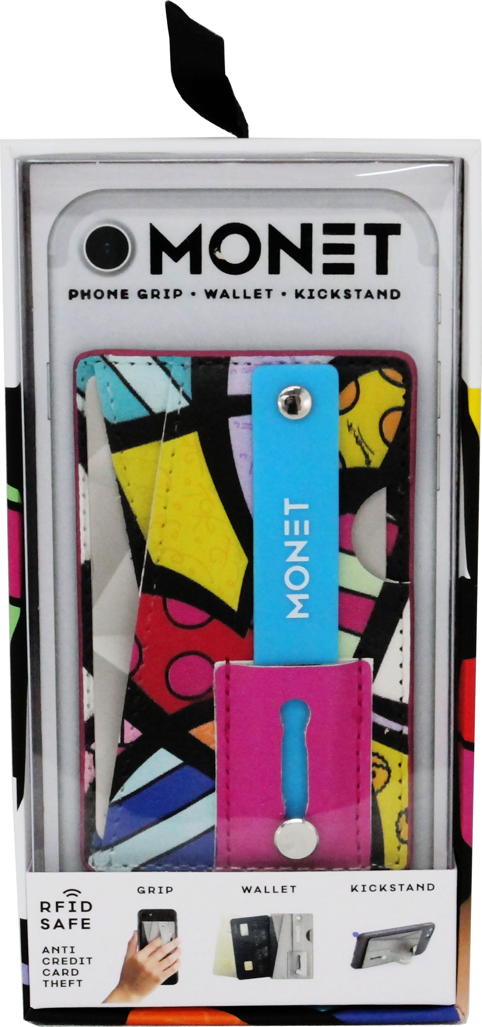 Introducing the Couple Monet Wallet - the Ultimate Phone Accessory! Featuring Romero Britto's design, this versatile accessory functions as a grip, wallet, and kickstand all in one. With a firm grip, your cards securely attach to the back of your phone case or phone, providing convenience and peace of mind wherever you go.