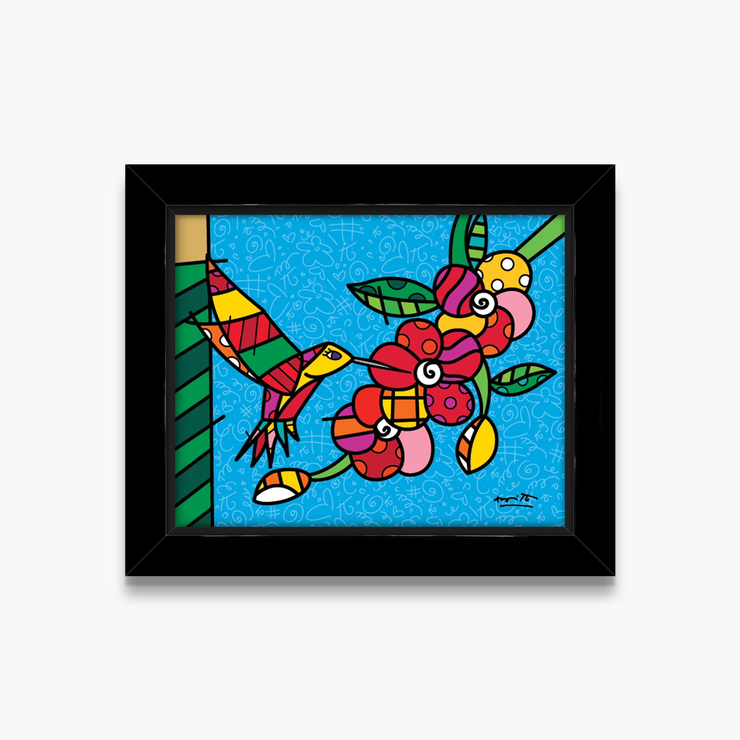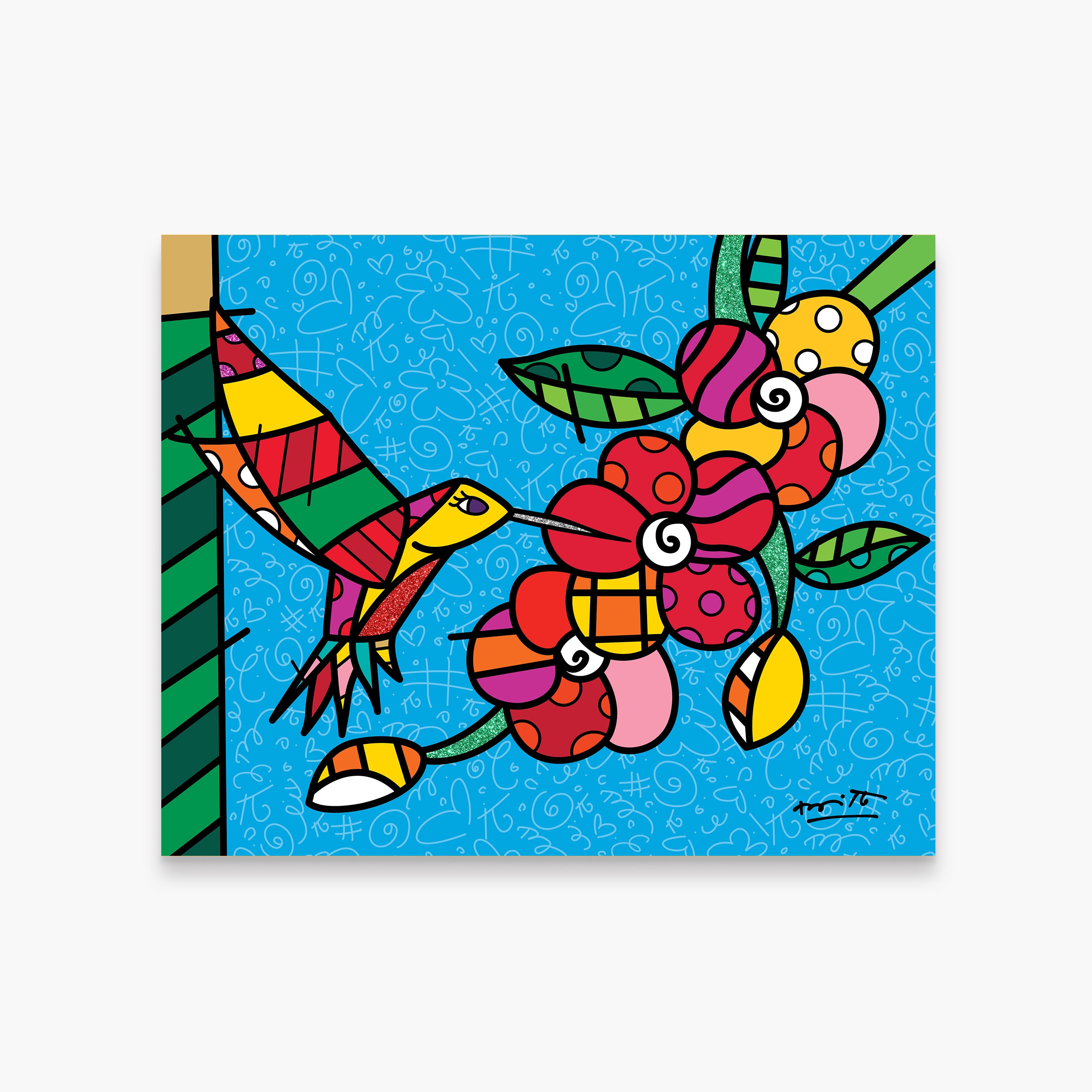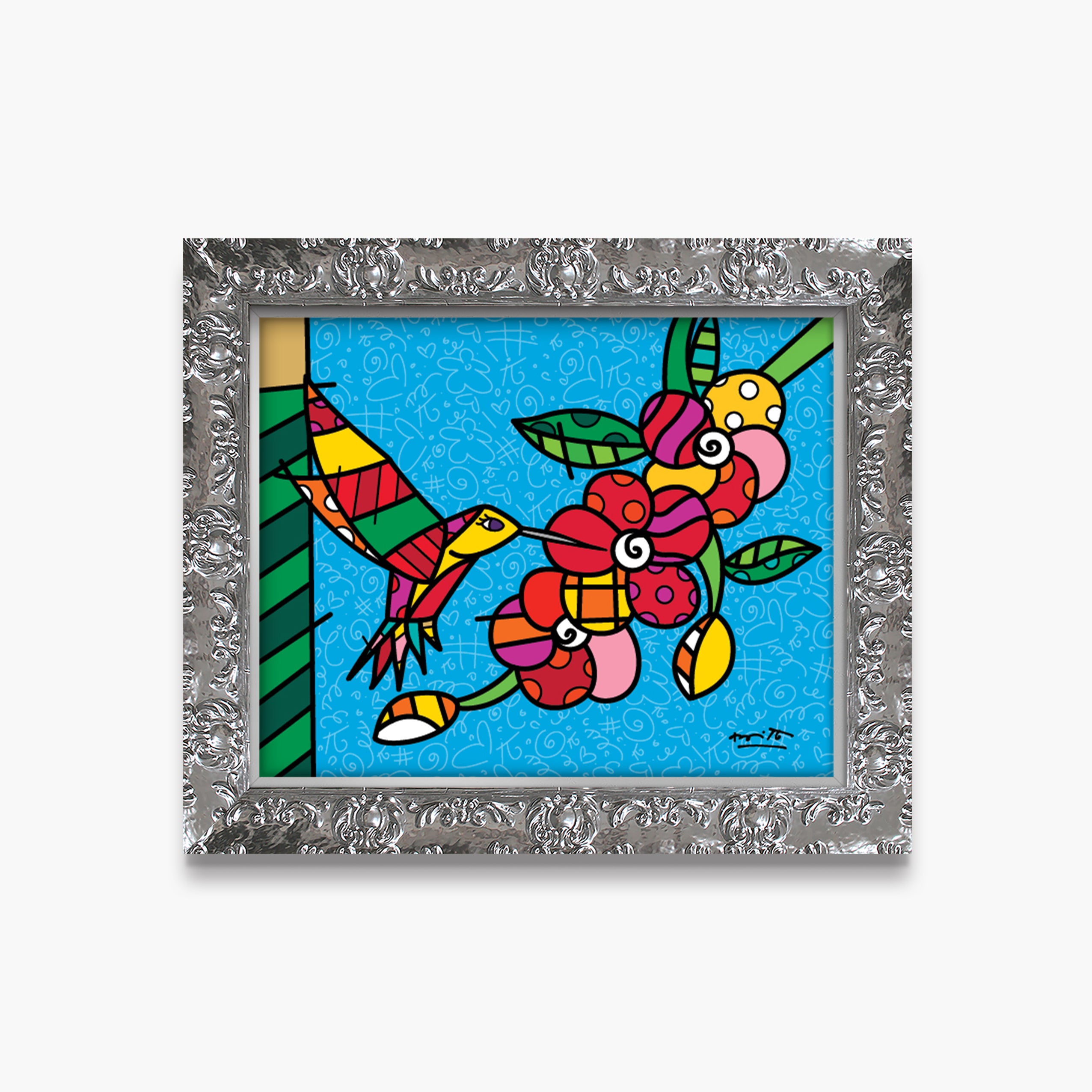 "Hummingbird" is a print inspired by the graceful flight of this beautiful American bird. Capturing its unique ability to fly forward, backward, and even upside down, Romero Britto celebrates the hummingbird's incredible agility and charm in this vibrant artwork.