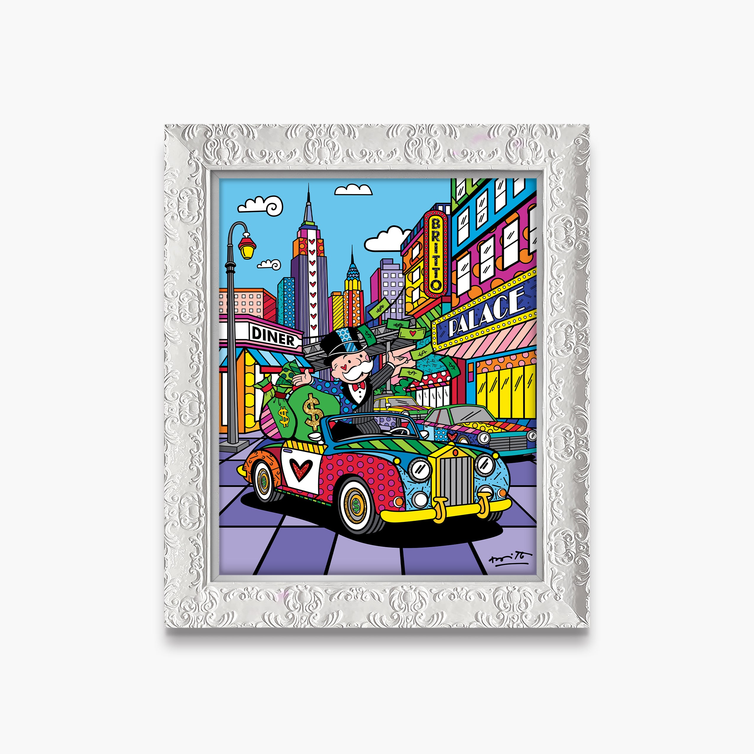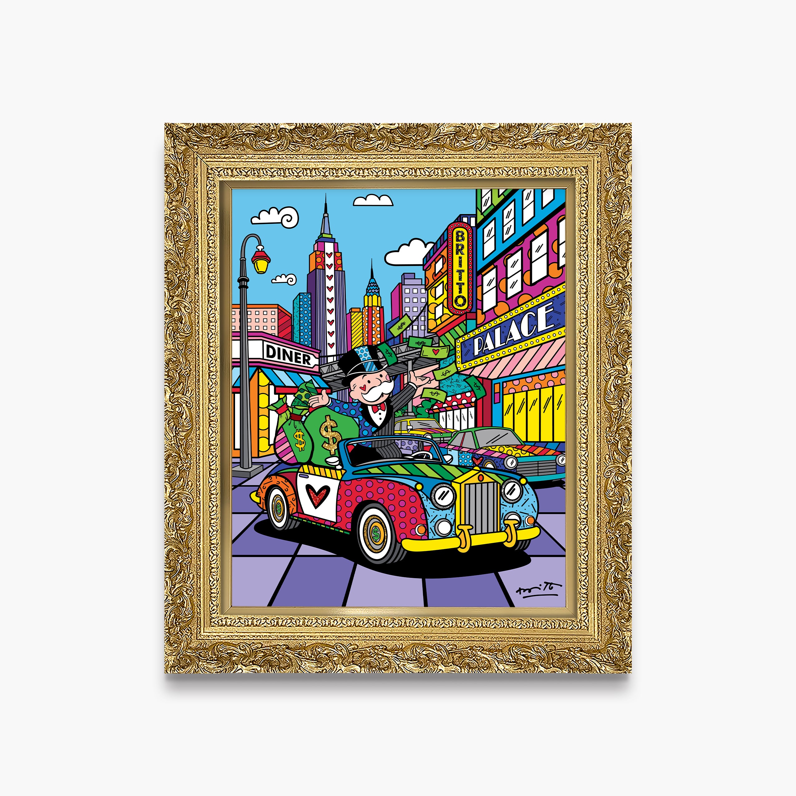 Limited edition print on canvas with Britto Diamond Dust hand embellishments. Hand signed by the artist and includes an exclusive hologram and Certificate of Authenticity from Romero Britto's Studio.
