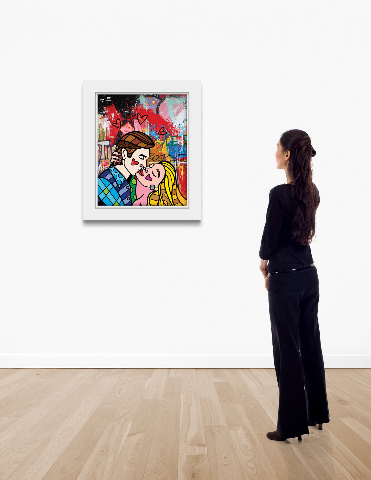 The graffiti collection is inspired on the walls of Romero’s first studio in Miami where he had the opportunity to add his own spray- painted, graffiti, color splashes, and free hand messages of hope, happiness and love-creating a new street style that inspired all that visited the Wynwood neighborhood. These early graffiti works are now fused with his iconic and bold contemporary style creating a fresh perspective to the ever-evolving artist.